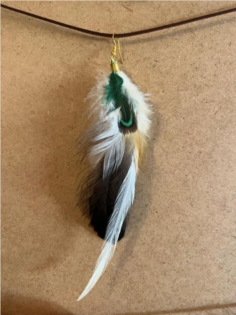 Tierra Suave manifests as a warm and silent gesture, a handcrafted earring where earthy tones and the delicate texture of the feathers evoke rootedness, calm, and a serene connection with the natural.